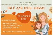 Дорогие друзья! Спешим пригласить вас на особенный вечер — «Всё для тебя, мама!», посвящённый самому дорогому и трогательному празднику — Дню матери!
